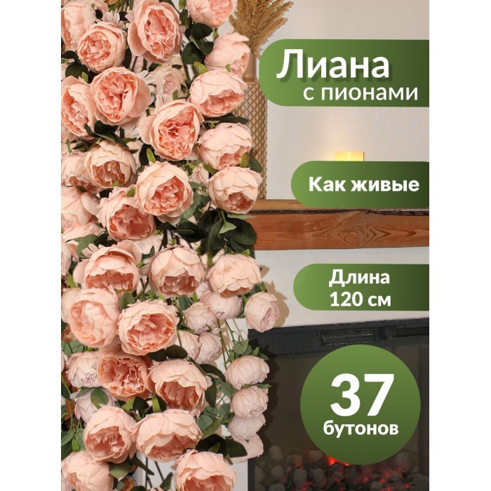 Цветы искуственные Пионы каскадные (37 штук, 120 см, цветок 10 см) розовый теплый 265451