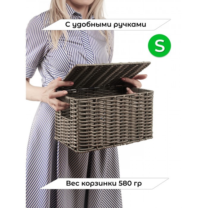 Корзина плетеная с/крыш S 290*190*160-mpl-fbo иск/ротанг, серый 265521