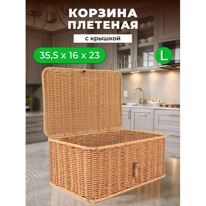Корзина плетеная с/крыш Пуговка L 360*230*160-mpl-fbo иск/ротанг, песочный 265669