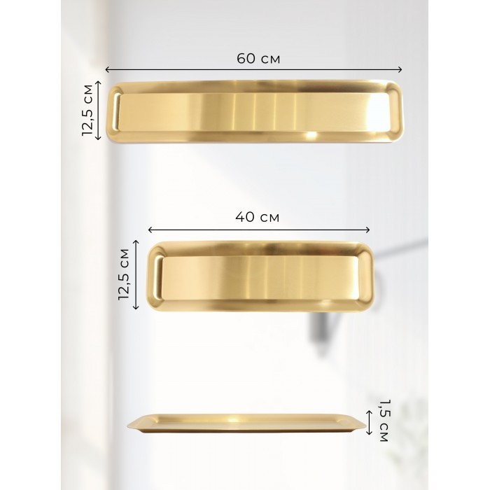 Набор блюд из нержевеющей стали прямоугольные 2 шт (40*12, 5см-1шт, 60*12, 5-1шт) золото 266204