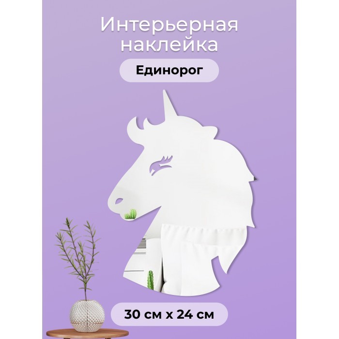 Интерьерные зеркальные наклейки Единорог (30*24см ) серебро 265533