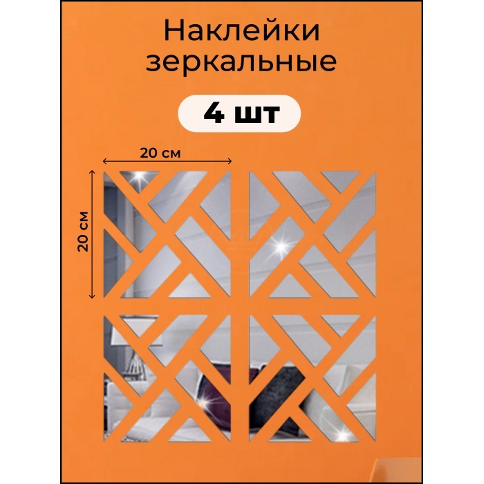 Интерьерные зеркальные наклейки Квадрат 4 шт ( 20*20 см ) 262183