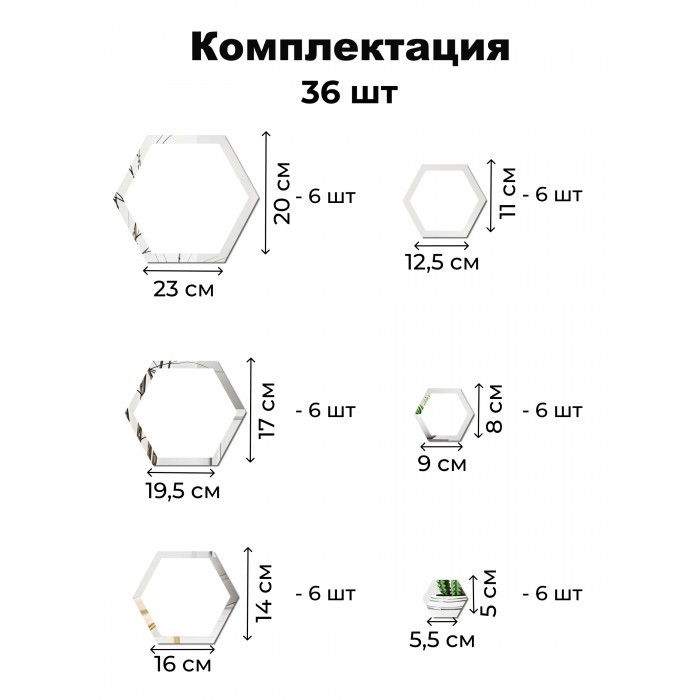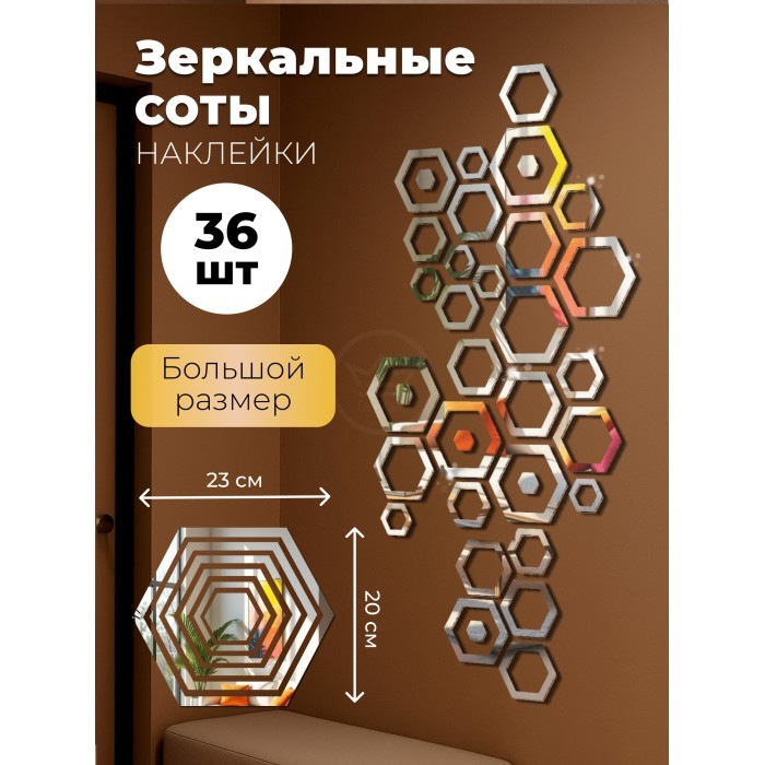Интерьерные зеркальные наклейки Сота-Разборная (36шт) серебро 265978