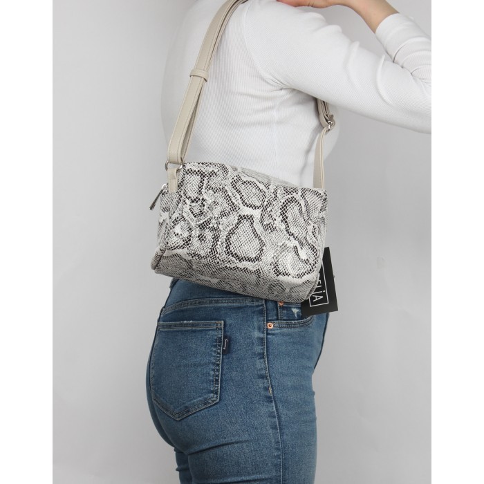 Сумка женская натуральная кожа ADEL-114/ММ (отделка ИСК/КОЖА), 1отд, плечевой ремень, серый питон 263803