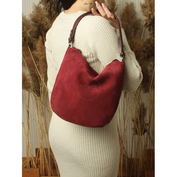 Сумка женская натуральная замша ADEL-208-4052в/ММ (отделка ИСК/КОЖА), 1отд+еврокарман, плечевой ремень, бордо 266028